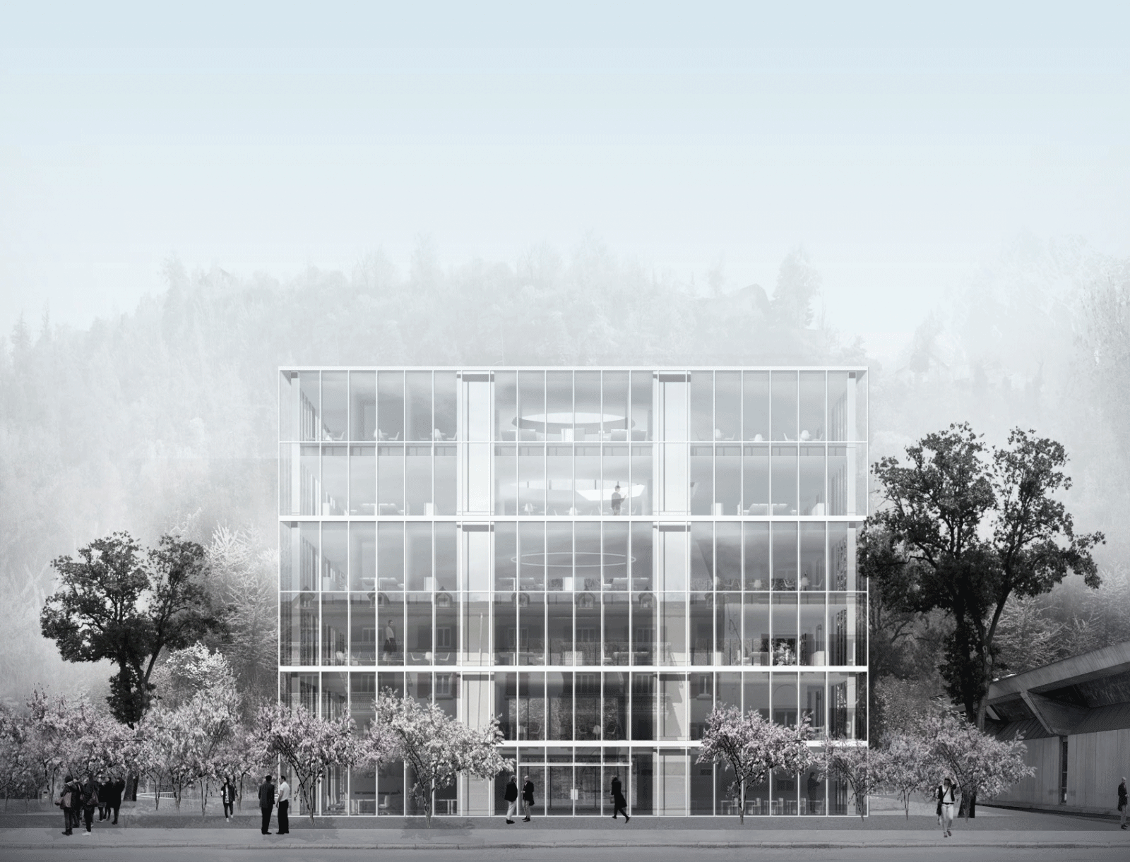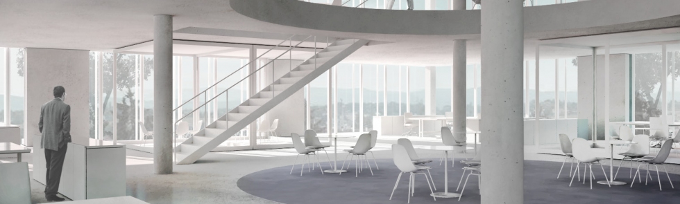 Das Siegerprojekt überzeugte die Jury durch eigenständige Lösungen sowohl auf architektonischer, betrieblicher als auch wirtschaftlicher Ebene. Als sechsgeschossiger Solitärbau rückt es von den Parzellenrändern ab und bildet einen als Obstgarten gestalteten Freiraum, der das Gebäude allseitig umgibt. Weiter vermochte die Organisation des Gebäudes in drei jeweils zweigeschossigen Arbeits-, Forschungs- und Konferenzcluster die gestellten Anforderungen an die neuen Arbeitswelten optimal zu erfüllen. Die Cluster über zwei Geschosse bieten jeweils einen zentralen Raum als kommunikatives Zentrum und ermöglichen Begegnung, Austausch und gemeinschaftliche Arbeit.