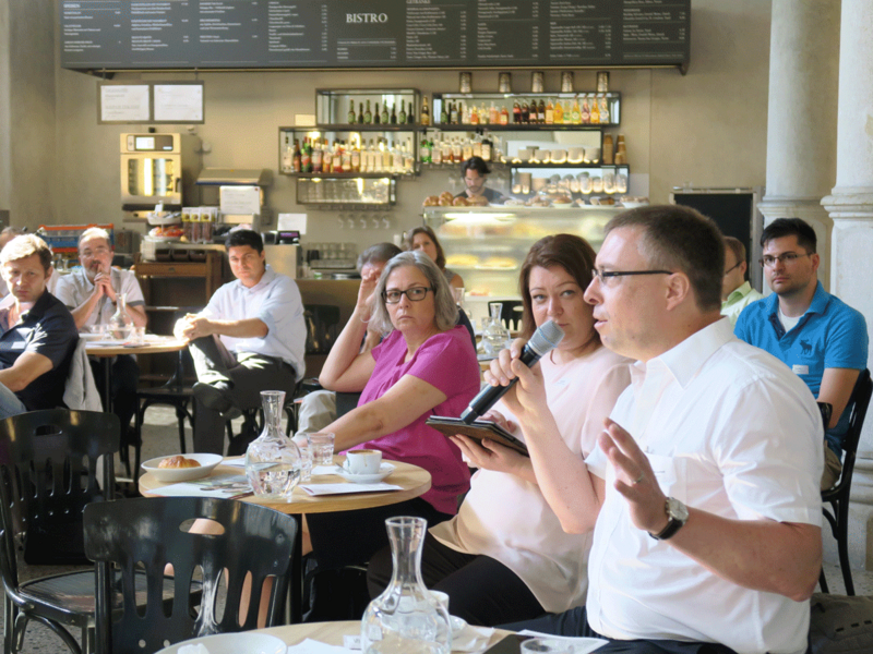 Dass eine gesellschaftliche Veränderung im Gange ist, will an diesem Donnerstagmorgen im Kaffee Spitz in Zürich niemand bestreiten. Pfund skizziert, wie menschliche Arbeit nach dem digitalen Wandel aussehen könnte: