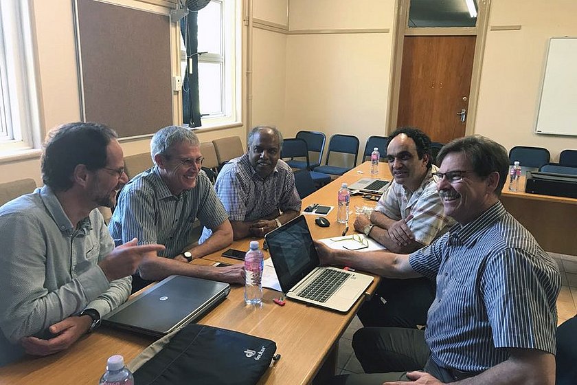Per Bergamin (ganz links im Bild) zu Besuch bei Forschenden in Südafrika.