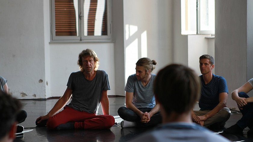 Theater-Dozent Hans-Henning Wulf im Austausch mit PiBS-Studierenden