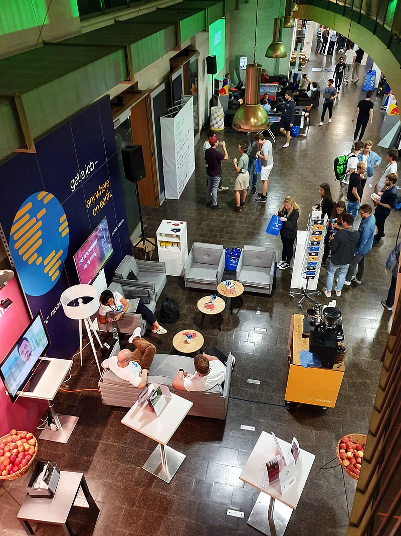 Von Glücksrädern über Fotoautomaten bis hin zu einem Kugelbad war alles vorhanden, um sich vom Coden abzulenken. Dazu gesellte sich noch eine omnipräsente kulinarische Note, manifestiert in Snacks und Getränken überall auf dem Gelände.