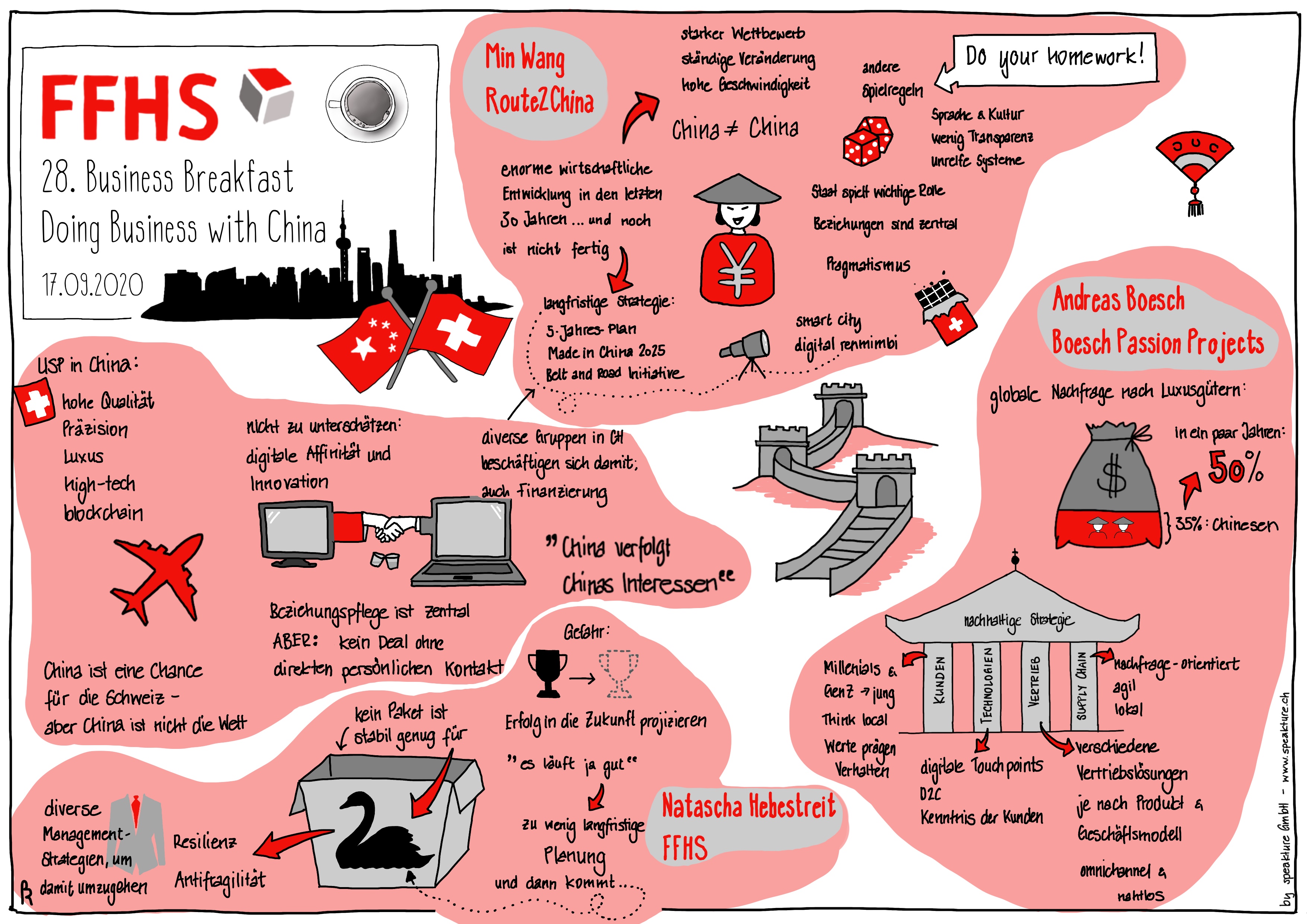 Die Themen «Chinesische Wirtschaft» und «Business mit China» findet man fast täglich in den Zeitungen. Die enge Zusammenarbeit zwischen Chinesischen und Schweizer Firmen verspricht Innovation und technologischen Fortschritt. Im 28. Business Breakfast gaben die Referenten Auskunft über Implikationen für Schweizer Unternehmen im «Business with China».