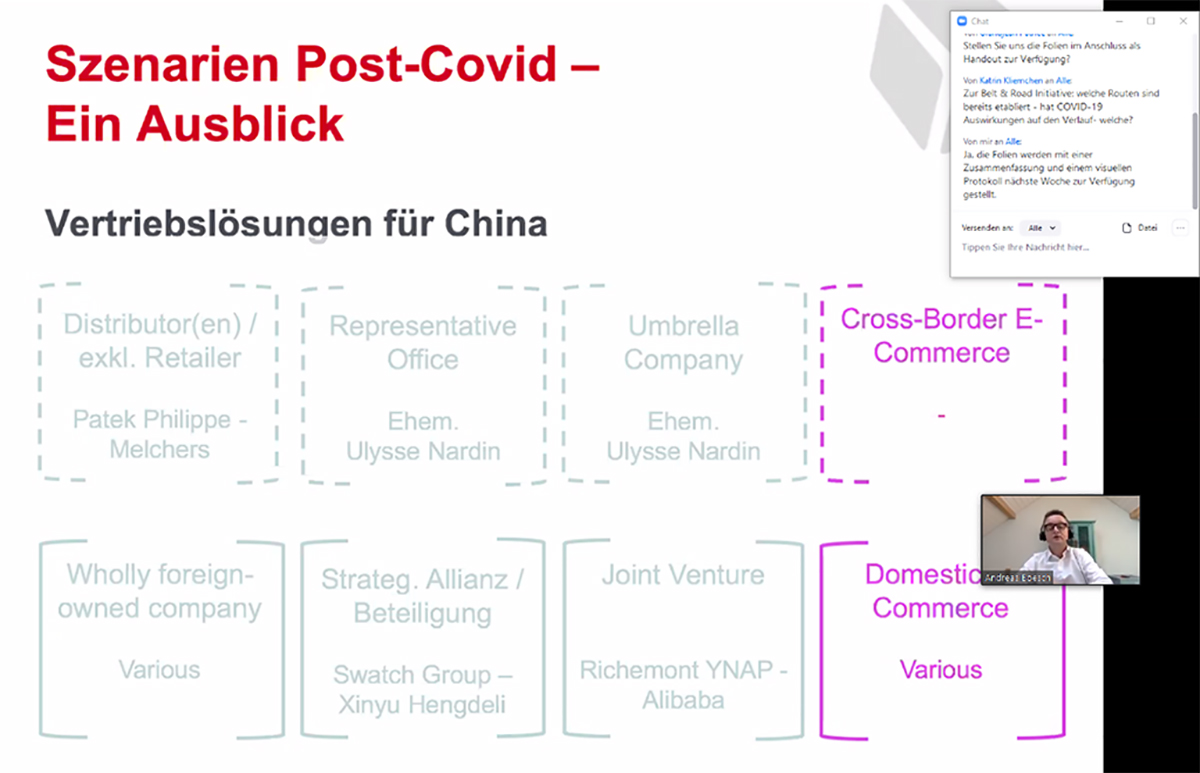 Der Konsumhunger China’s was Luxusgüter betrifft wurde von Andreas Boesch demonstriert: es wird erwartet, dass China bis 2025 der grösste Markt weltweit für diese Artikel werden wird. Als profunder Kenner des Asien- und Chinageschäfts zeigte er mögliche Strategien auf, wie ein Markteintritt ablaufen könnte und dass es wichtig ist, diese langfristig anzulegen und Investitionen nicht zu scheuen, wenn man den Markt richtig verstehen und kontrollieren, Beziehungen aufbauen und sich sowohl Knowhow als auch Marktpräsenz verschaffen möchte.
