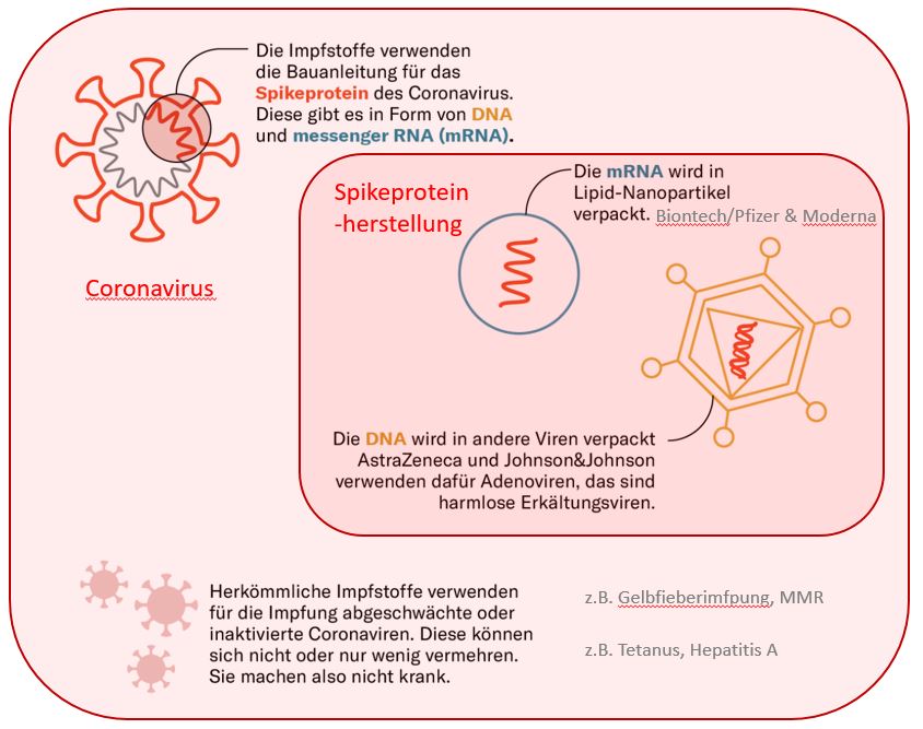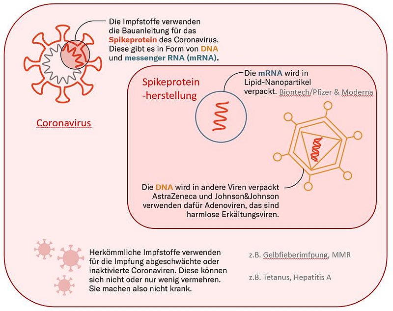 Oft werden bezüglich der kurzen Entwicklungszeit Bedenken zur Corona-Impfung genannt. Der Grund für die schnelle Entwicklung ist, dass die Phasen der verschiedenen Untersuchungen parallel stattfinden konnten. Im Falle der Corona-Impfung ist der entscheidende Aspekt, dass neben Firmen auch Staaten und Verbunde schnell investiert haben, damit die Entwicklung vorangetrieben wurde. Ausserdem konnte bei der Entwicklung des Impfstoffs bereits auf Vorwissen zurückgegriffen werden. Das Wissen im Umgang mit mRNA war bereits seit 20 Jahren bekannt, es gibt auch bereits ein zugelassenes Medikament, das auf mRNA-Basis funktioniert.