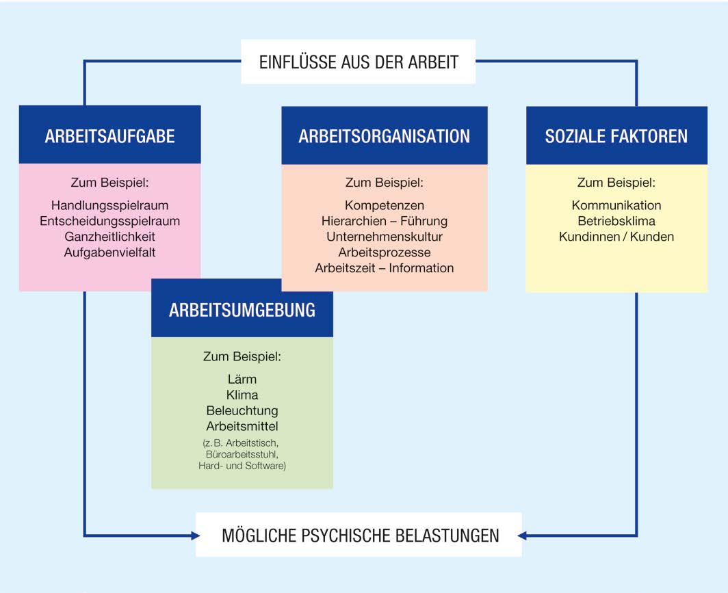 Psychische Belastung ist definiert als Gesamtheit aller erfassbaren Einflüsse, die von aussen auf den Menschen zukommen und psychisch auf ihn einwirken (DIN ENISO10075-1). Psychische Belastungen können sowohl berufliche als auch ausserberufliche Faktoren sein. Der Begriff Belastung wird in der Arbeitswissenschaft wertneutral, im allgemeinen Sprachgebrauch jedoch häufig negativ benutzt. Psychische Beanspruchung ist die unmittelbare Auswirkung der psychischen Belastung im Individuum in Abhängigkeit von seinen jeweiligen Voraussetzungen, einschliesslich der individuellen Bewältigungsstrategien (DIN EN ISO10075-1).