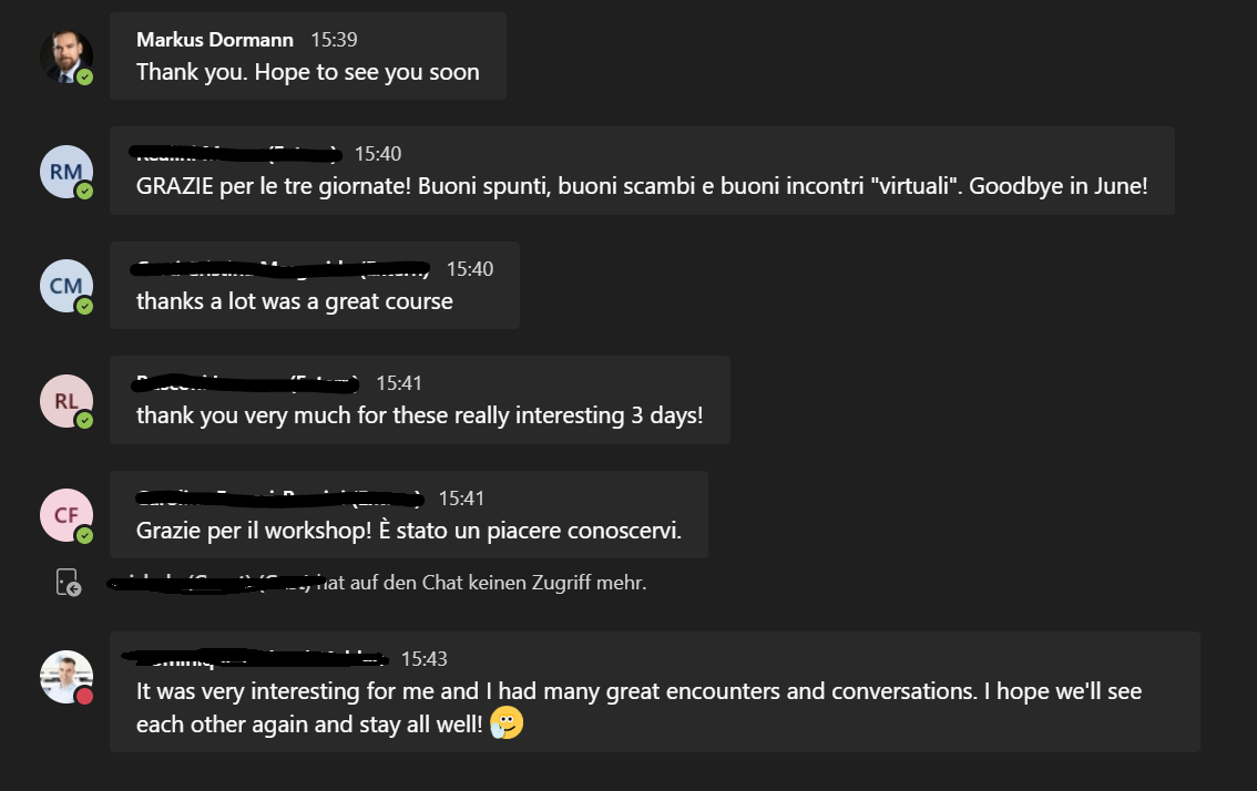 Der Teams-Chat zeigte, dass die Teilnehmenden den Online-Kurs geschätzt hatten.
