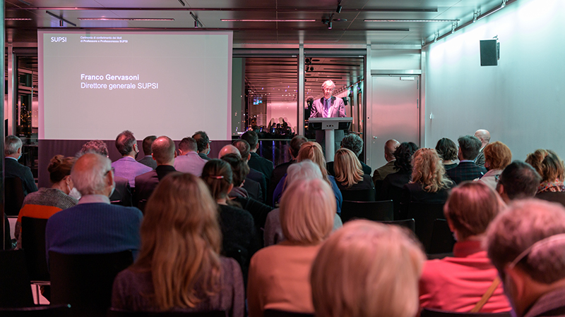Im feierlichen Rahmen wurden am Dienstagabend 36 Professuren der Fachhochschule Südschweiz (SUPSI) in Lugano verliehen. Mit dabei sechs Professorinnen und Professoren der FFHS.