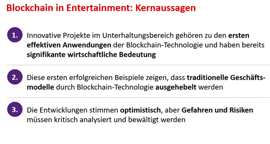 Den Einsatz der Blockchain im Unterhaltungssektor fasste Dr. Christian Müller prägnant in 3 Kernaussagen zusammen: