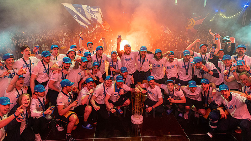 Das Meisterteam des EV Zug hat guten Grund zum Feiern.
