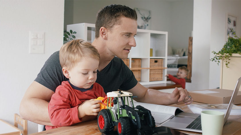 Mehr Zeit zu Hause: Nevin mit seinen Zwillingen Eddie und Louie.