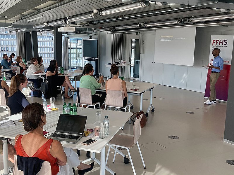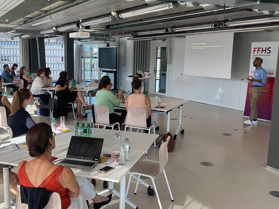 Yves-Alain Studer, ehemaliger Student im MAS Arbeit 4.0 an der FFHS, stellte die Ergebnisse seiner Masterthesis vor, in welcher er sich auf die Erforschung der weichen, zwischenmenschlichen Faktoren fokussierte, die das Online-Onboarding beeinflussen, und weniger auf die technischen Rahmenbedingungen. Einige überraschende Ergebnisse, auf die er in seinen Recherchen und Evaluationen stiess, und auf die der Arbeitgeber achten sollte, sind:
