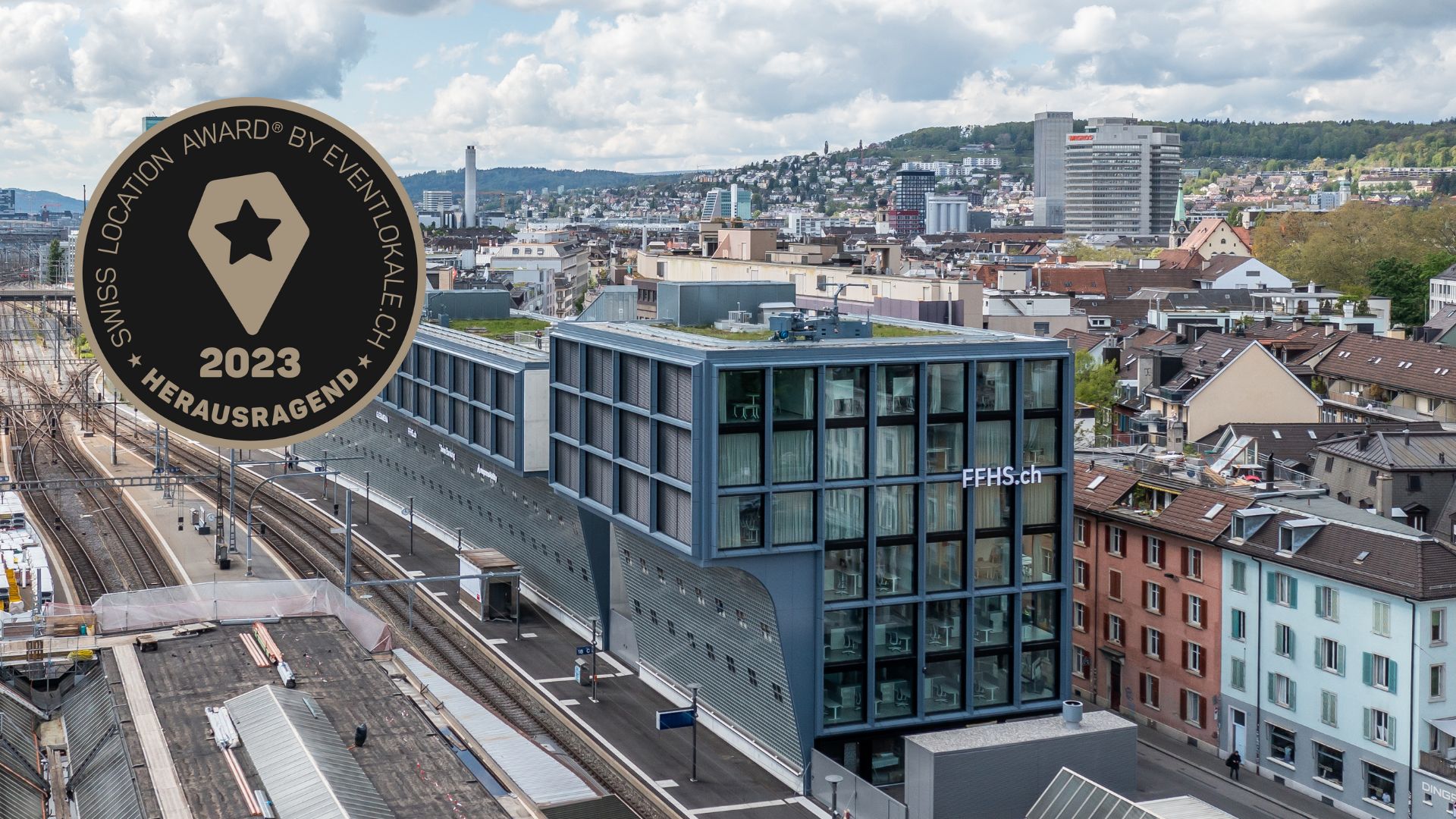 Der Gleisarena FFHS Campus Zürich hat beim diesjährigen Swiss Location Award von eventlokale.ch das Gütesiegel «herausragend» erhalten. Die Gleisarena FFHS erhielt 9.1 von insgesamt 10 Punkten und hat ihr letztjähriges Ergebnis sogar noch übertroffen.