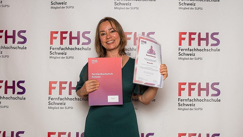 Miriam Näf mit der Auszeichnung, die sie für ihre Abschlussarbeit im BSc Ernährung und Diätetik erhalten hat.