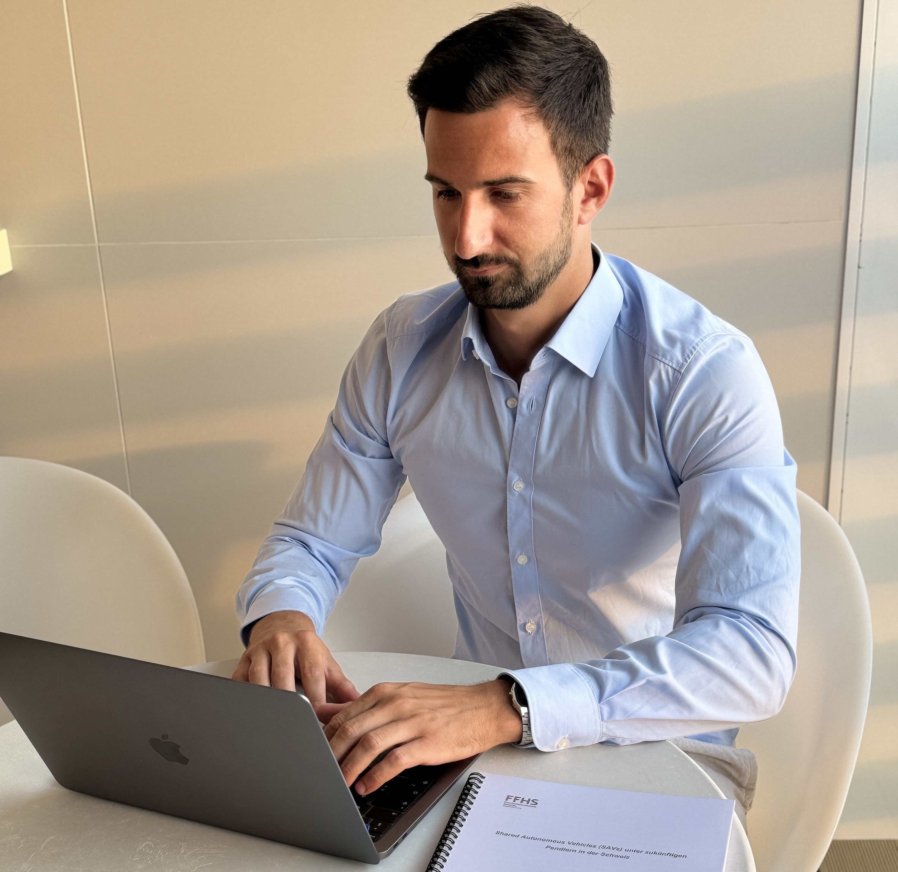 Alessandro Oliva weiss nicht zuletzt aufgrund seiner Abschlussarbeit über selbstfahrende führerlose und von mehreren Passagieren genutzten Fahrzeugen, dass Nachhaltigkeit ein zentraler Aspekt bei der Entwicklung neuer Mobilitätslösungen darstellt. (Foto: ZVG)