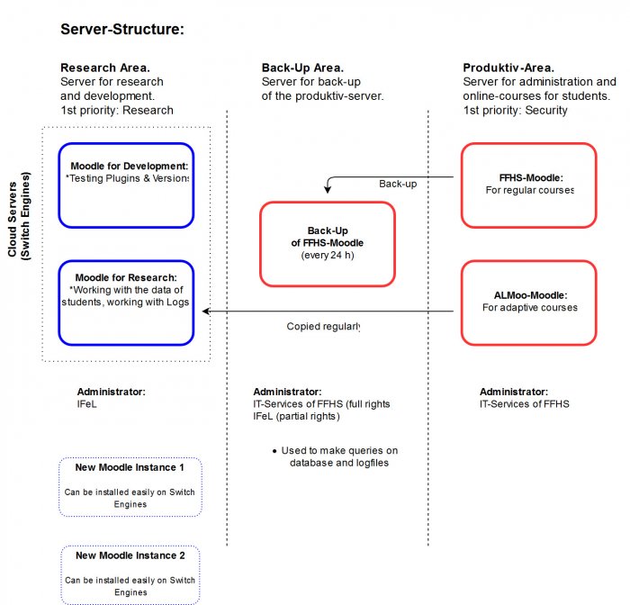 - Moodle for Research Server is used to analyze log files from productive servers. Student data and logs can be examined to understand student behavior and efficiency of the tools.